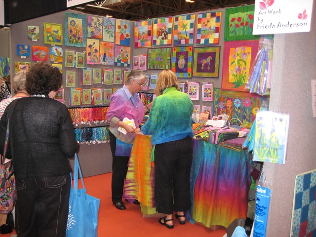 Kaffee Fassett satt og signerte bøker… Det var mange demoer å se på. Her er det farging av stoff og papir